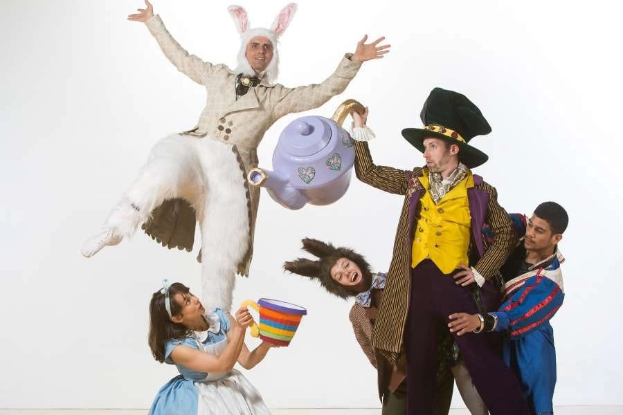 Using the experience of nine seasons of Sweets, Foehringer has used the same philosophy for this production. “When we made Nutcracker Sweets, we were able to really observe what’s exciting and fun for the kids that were in the audience. So, as we put together Alice in Wonderland, that’s the first way that we went at it. What things are going to be exciting for children?” The 8 dancers are accompanied by a 10-instrument reduction of the score for Saint-Saens’ ballet Javotte (Foehringer says before the show, they’ll have an ‘instrument parade’ with a chance to show the kids what each of them sounds like.) “Part of what we do is, we want the kids to have their first experience with live theater with us. Or their first dance experience with live dance. So live music is really an important part of that.” There will be oversized props and colorful costumes, puppets, and projections to help keep scene changes to a minimum. The adaptation makes some changes for the new generation of kids. “It’s all inspired by the same characters, but we sort of put a girl-power twist on Alice. She’s not just stumbling through a world where everything is crazy, she’s sort of using her superpower of kindness and tolerance to deal with the different situations she’s in.”