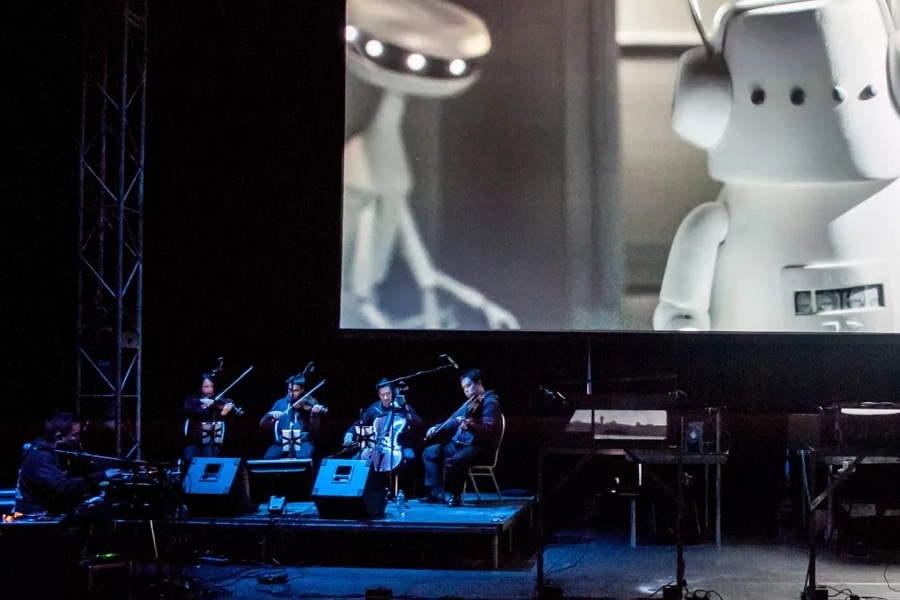 Nufonia Must Fall began its life as a graphic novel by the Canadian DJ Eric San, who performs and records under the name Kid Koala. It tells the story of a soon-to-be-decommissioned robot looking for purpose and love against the odds. This week at SFJAZZ and next Tuesday and Wednesday at San Jose’s Hammer Theatre Center, it will be performed with puppets and live accompaniment by Kid Koala and the Afiara Quartet.