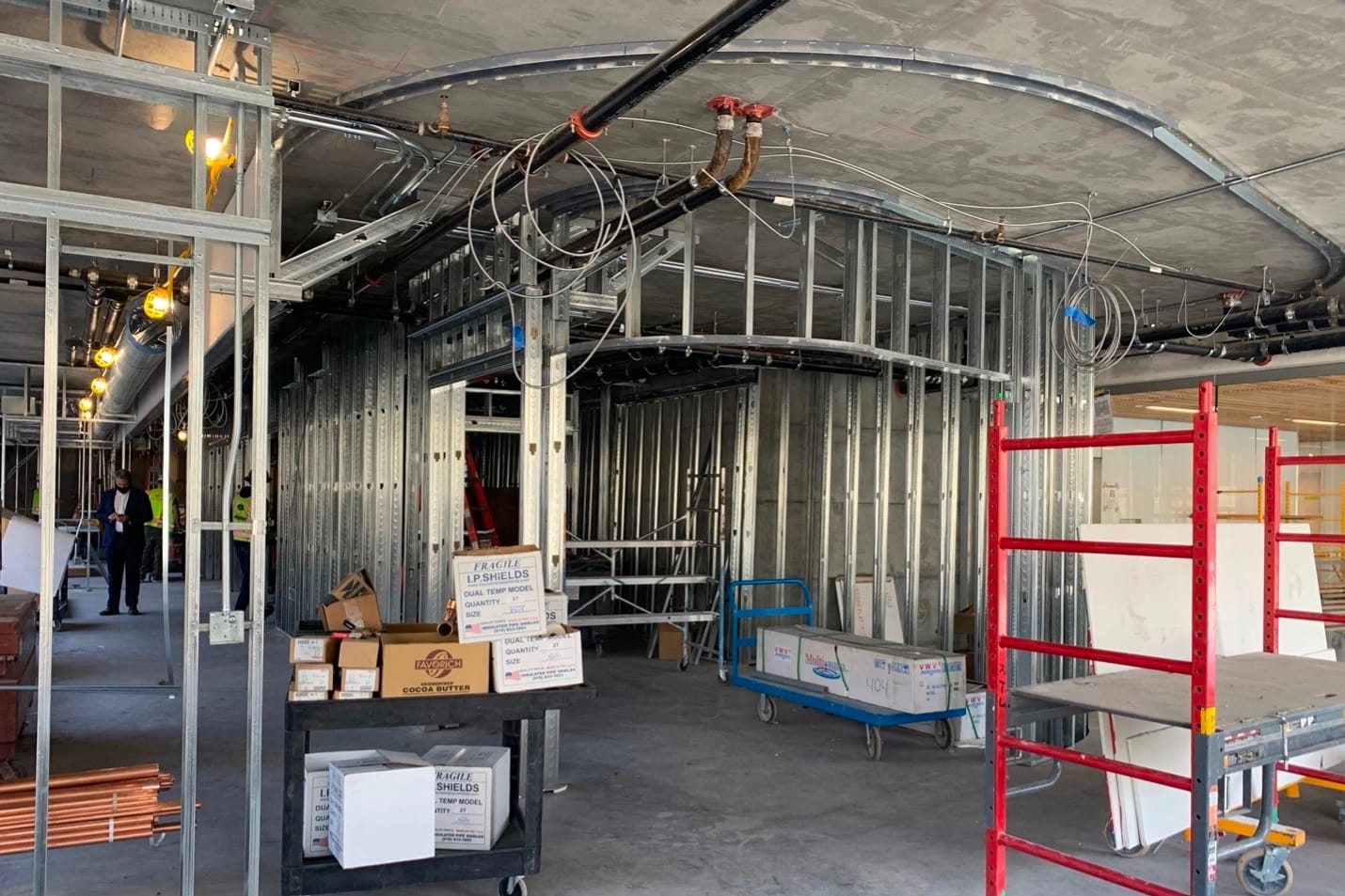 In early February, I was delighted to stop into the new Bowes Performing Arts Center in San Francisco, the new home of KDFC, to see how construction was going. While health and safety precautions have delayed the construction of KDFC’s new studios and offices, with these pictures I want to share the good progress being made. We’ve also included artist renderings so you’ll see not only how much work there’s still left to do, but also see the expected final results that we are so excited about.