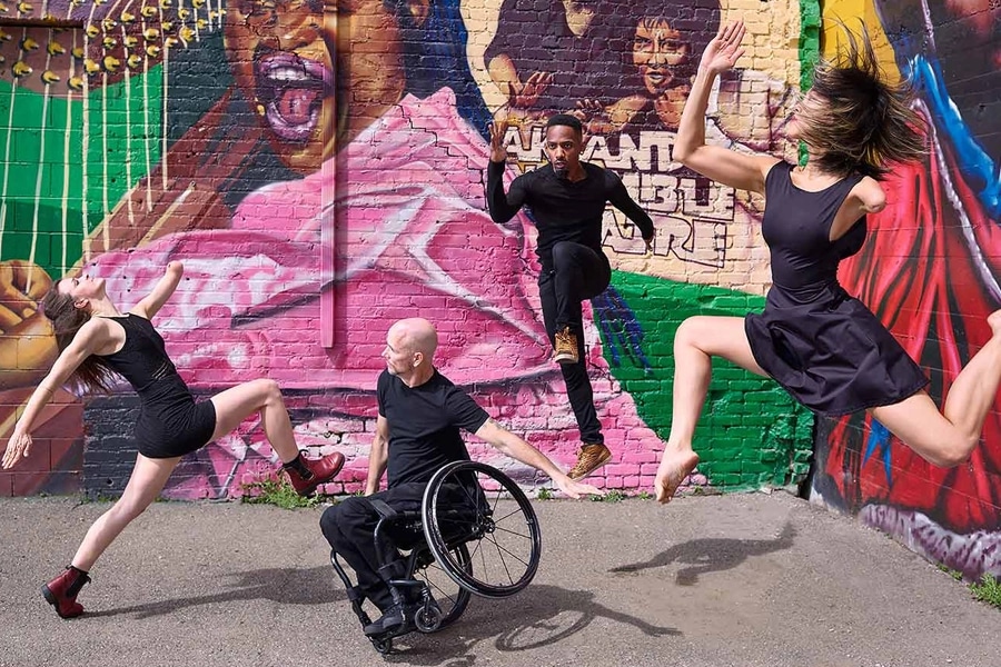 Marc Brew says putting the focus on the talents of the individual dancers and their interactions results in powerful collaborations. “At the base of it, I really want them to be who they are as people. So this work is very much about drawing on that. And also, how they work together as a collective, as a team. And through that, that strength and power comes through their work… So how do I work with restriction, with one’s physicality, with one’s differences. And how do we find the possibilities and solutions?” He had to change his career trajectory twenty years ago, when he was in a car accident. He had been a classically trained dancer. “There’s this expectation for you to fulfill a certain model or a certain mold of dancer. But then acquiring my disability, I didn’t fit into that mold any longer. So I had to start to create my own molds, or break the mold completely, and explore what I could do.” But what many might see as obstacles, he’s turned into creative possibility. “I very much enjoy the challenge and the problems, and how we can work with them to our advantage. And I think that’s what helps to create interesting possibilities and maybe movement and vocabulary that isn’t as familiar as traditional dance is.”