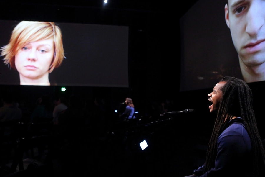 San Francisco Opera Lab presents The Source – an oratorio by composer Ted Hearne and librettist Mark Doten, based on the leaked classified Department of Defense documents and communications by Chelsea Manning. It’s a multi-media work, with four singers, whose voices (when singing text from the documents) are electronically altered. The words of Manning herself are also included, who at the time was beginning the process of transitioning from Bradley to Chelsea.