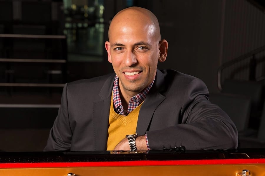 The four concerts are different in approach and instrumentation – with solo classical and jazz, and trio and duets represented. Wednesday’s concert was inspired by a Prelude of Mompou’s that San Francisco Performances Executive Director Melanie Smith heard Simon perform with his trio back at an earlier Salon concert at the Hotel Rex. “I’ve always loved the music of Federico Mompou. He’s a composer who writes very simply. He always wrote in short form. Never wrote anything for long form or extended work. There’s something about his pieces that have an improvising quality to them. I of course, I’m an improviser, and the question came up whether I would be doing some improvisation during this Mompou concert, and I believe that his music is so beautiful as it is, that really nothing needs to be added or subtracted from it.” That simplicity and directness will be on display in music from his Preludes, Song and Dance collection, and Música Callada (Silent Music). “His writing is very concise. So he has a gift for saying the most with the fewest notes. And that whole aesthetic is something I’m very much attracted to. I connect with that. In my own writing, in my own playing as an improviser, I strive to get the most out of the fewest notes.” The next concert in early February, will feature Astor Piazzolla’s ‘Four Seasons of Buenos Aires’ as arranged for Piano Trio. There’s a solo jazz recital on February 26th, and the final concert in mid-April will be duets of music for flute and piano by Venezuelan composers, which he’ll play with his longtime friend Marco Granados.