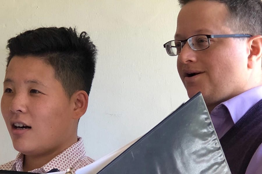 “I’m a chorus director by profession,” Zellman says. “I teach at San Francisco State, and several years ago it started to become really clear that the ways that choruses were set up in most settings were just really unwelcoming and unfriendly to transgender people like myself… And it just felt to me like it was really time that this area had, especially here in the Bay Area, that we had a space that was safe and celebrated a whole variety of voices where you could come sing in the chorus without knowing what your part should be. I was seeing more and more singers who really wanted a place to sing, but just did not feel like there was a comfortable place for them. And so I approached the Community Music Center and said, ‘I have an idea about something we should do.'” The singers in the choir have many issues that others might not think of: having a changing range that can accompany taking hormones, or becoming familiar with a different range or vocal clef than they might have sung before. “I’ve really been enjoying it,” says Anna Dickinson. “It’s definitely stretched my skills, enabled me to work on different parts of my voice that I haven’t had formal training in, and also just to have the camaraderie of everybody else in the choir.” Lucas Sanchez began singing off and on as a teenager. “I was singing much higher in my register, and now that I know more of who I am, wanting to sing lower in my register, but really feeling at odds of, like, ‘I really don’t know how to do that, and even to read the music…This is a perfect place for me to come, and the social aspect of it is wonderful and it’s just come at a really crucial time. Just to come to this place once a week and sing is… just, it’s beautiful.’”
