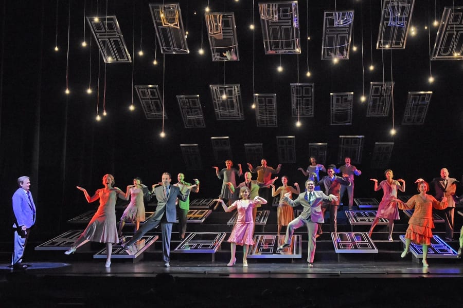 Many of the basic plot points are still there: George Bailey, who dreams of seeing the world, remains in his little town of Bedford Falls, not knowing how much he’s done to improve the lives of those around him. Considering suicide, he’s shown the world as it would be if he’d never been born. Approaching a work as well-known and loved as this meant leaving some of the familiar behind, Burden says. “I had to do business with not trying to take on Jimmy Stewart in any way, because there’s just no way to do that. It’s so iconic, and he is such an unbelievable performer. What I had to my advantage was Jake’s score, and Gene’s wonderful telling of the story. So I really could go right to the material, and play the character that they created for this stage production. And that has been the gift.” Burden says the film is a part of his family’s holiday ritual, but for Schultz, it’s was a bit more new. “It’s a Wonderful Life isn’t really a part of the ether in South African Christmas culture, but I’m a bit of a movie nut…I really think it’s a fabulous story, and to be foreign and to be a part of such an American story is just such a real real privilege, so I’m very excited. Even I, who don’t necessarily have White Christmases and all these wonderful things to hold onto as part of my culture, I can still lean into the story of someone needing hope when they’re at their lowest.” A tear-jerker plot can be difficult to sing, Schultz says: “I tend to let the emotion run wild in the rehearsal room. You try to move through it there and process yourself in that experience. And so, if you’re cracking on notes, and you’re crying, and you’re wiping snot away, it’s OK, because we’re all in the same boat together. Of course you’re going to get choked up. So I think all of us are kind of just… You know it’s coming, so you just prepare yourself as well as you can, and then hope that notes come out.”